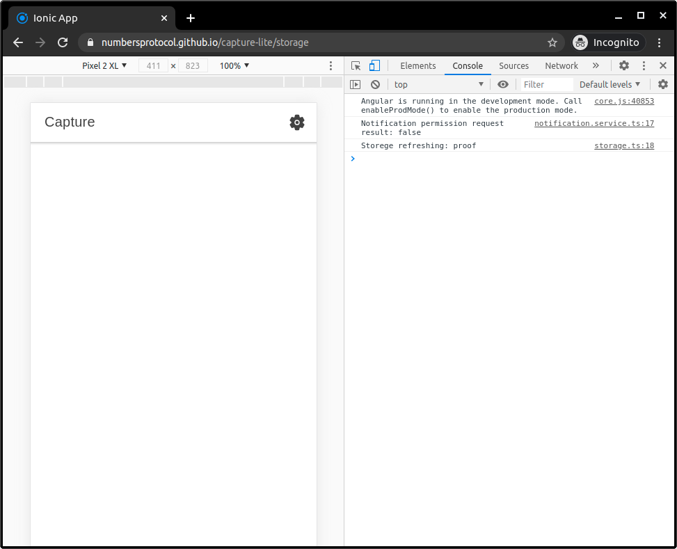 ionic serveThe signature of proofs can be verified with Web Crypto API. The signed message is generated by services/serialization/serialization.service.ts#stringify() method. A Python example for verification can be found in the Starling Capture repository.