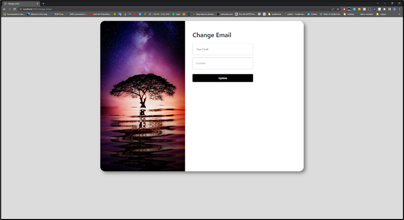 change email page: to enter click on -> “update email” in profile details page. a. Fields must be filled, if new email not in system a verification link will be sent to the new email only after clicking on link the changing will happen and link will be invalid afterwards. b. Possible errors: emails not matching or email already registered.