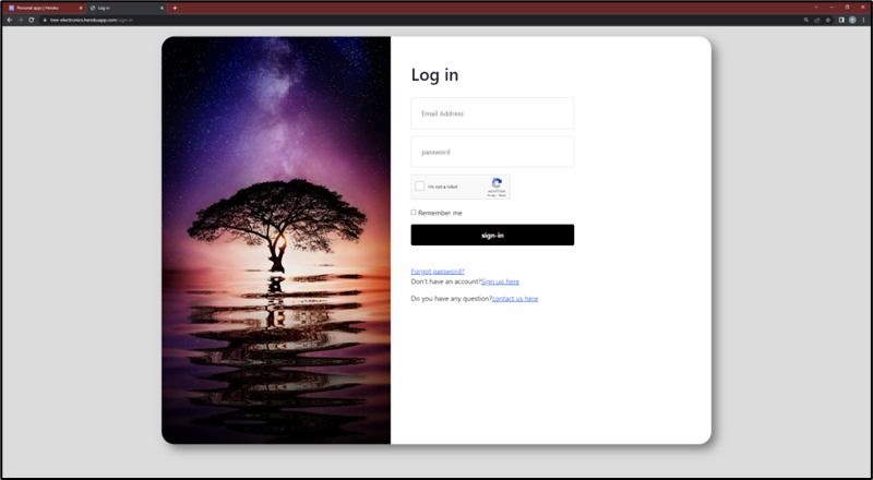 First enter the site https://tree-electronics.herokuapp.com/ if user was signed in already it moves to dashboard else main page will be sign in page.