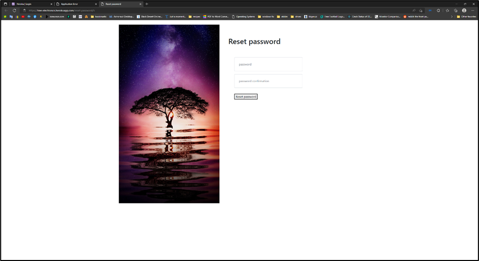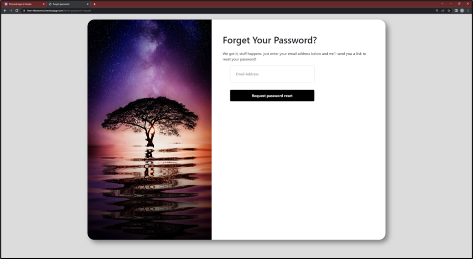 Reset Password (The window to which you redirect after you click on the link you receive in the email of requesting a password change)