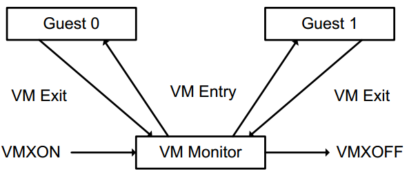 - VMXON — This instruction takes a single 64-bit source operand that is in memory. It causes a logical processor to enter VMX root operation and to use the memory referenced by the operand to support VMX operation.