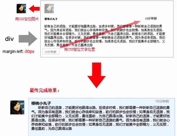 这种方式常用于一列固定宽度,另一列宽度自适应的情况。(绝对定位的元素要放在相对定位的元素的里面)